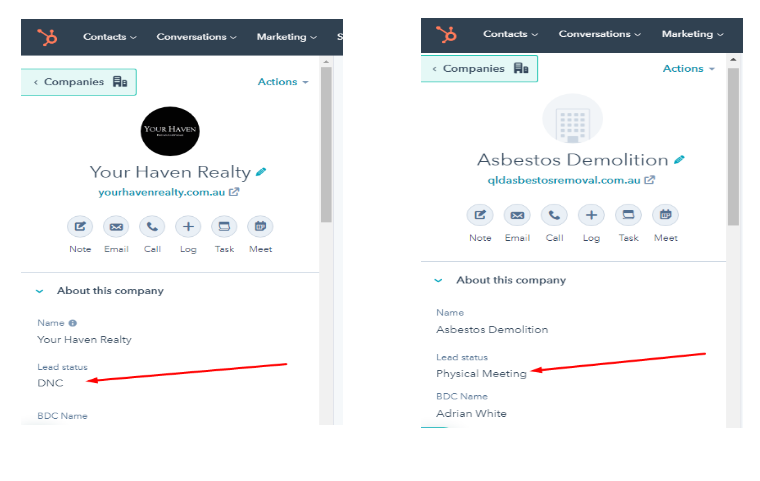 When you see any “Lead Status” as DNC/Physical Meeting/Phone Meeting you will NOT proceed in any circumstances.