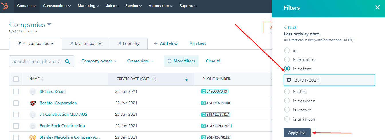 Click on more filters – Select Last activity date – and select 90 days from today as shown below:
