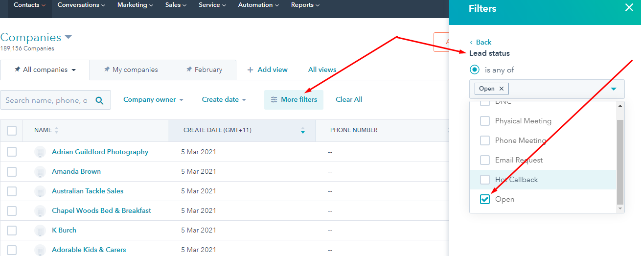Just click on “More Filter” and on right side select “Leads Status” and then choose “OPEN”
