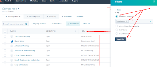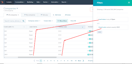 NOTE – You CANNOT have Post Code + City searched together in filter.